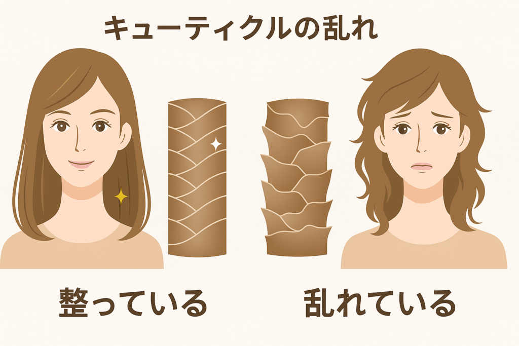 これが浮いたり欠けたりすると、髪同士が引っかかりやすくなります。