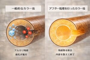 カラー後の髪の内部では、こんなことが起きています。