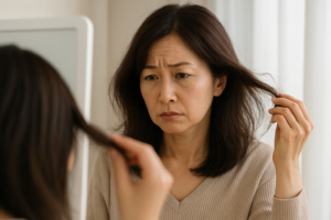 これは髪内部のタンパク質の偏りや、毛穴の形の変化が影響しており、多くの方が「昔よりまとまりにくい」と感じ始めます。